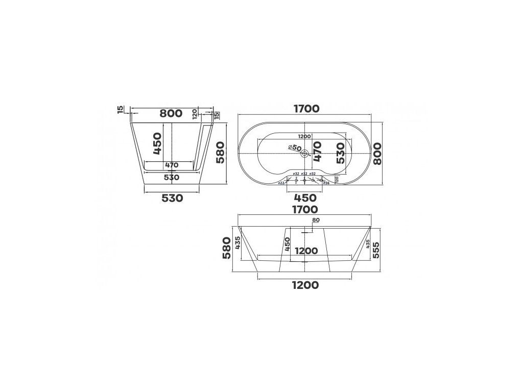 BRAIDER volně stojící nástěnná vana SUVERENIA 170 cm BÍLÁ + SIFON, BATERIE
