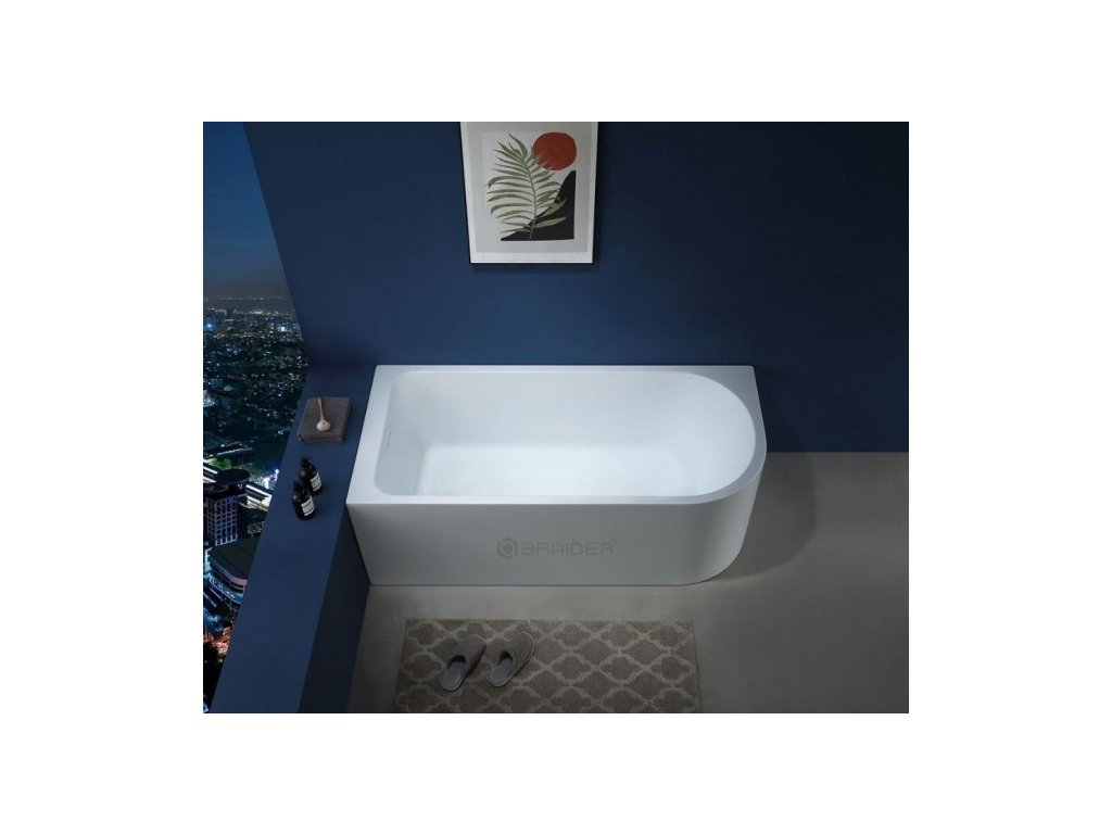 Rohová volně stojící nástěnná vana Braider Restia o rozměrech 140x75cm, vyrobená z vysoce kvalitního akrylátu, zesílená pryskyřicí a sklolaminátem. S hladkým antibakteriálním povrchem v bílé barvě. Výhody tohoto modelu spočívají v různosti způsobu montáže a umístění v místnosti. A to buď jako volně stojící, nástěnná, vestavěná nebo rohová. Při výběru jakékoliv z těchto variant je možné se domluvit, či se má vana orientovat vpravo nebo vlevo v místnosti a tím tak vybrat správný tvar vany.