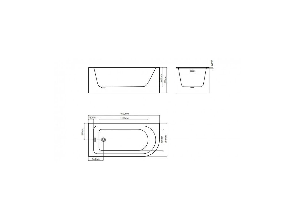 - Nástěnná police (krátká strana) s možností instalace vanové baterie.