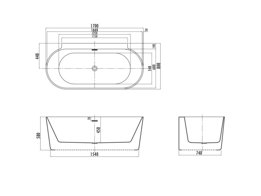 Volně stojící nástěnná vana BRAIDER RESTIA OVAL bílá 170x80 cm.